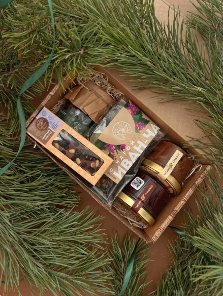 Продукция уложена в картонную коробочку с фирменным логотипом, внутри коробочки деревянная стружка