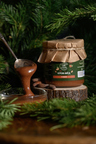 Состав: мёд цветочный (разнотравье), какао порошок алкализированный с повышенным содержанием какао-масла